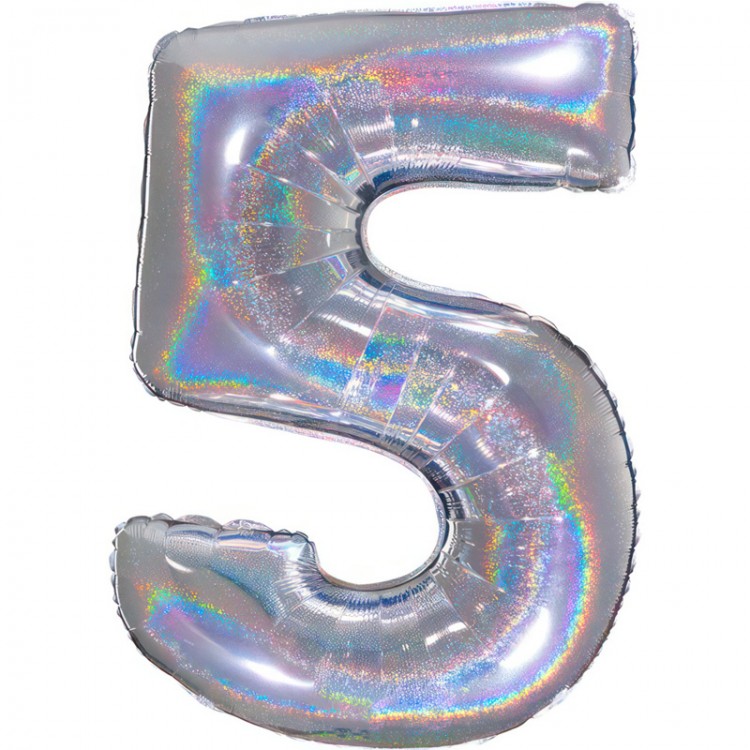 Balão Número 5 Prateado Holográfico