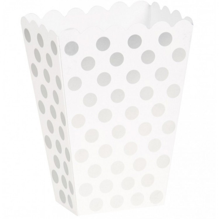 Caixas Pipocas Branco Bolinhas Prata