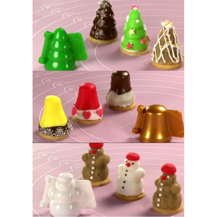 - 3 moldes de formatos natalícios (pinheiro, sino e boneco de neve) para cake pops;