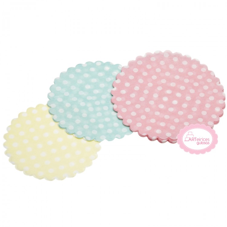 - 10 naperons rosa claro bolinhas com 11cm de diâmetro;