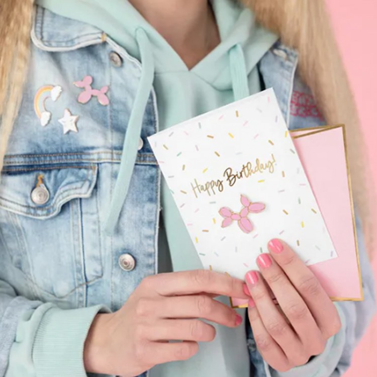 - 1 postal + 1 pin em forma de balão cão + 1 envelope;