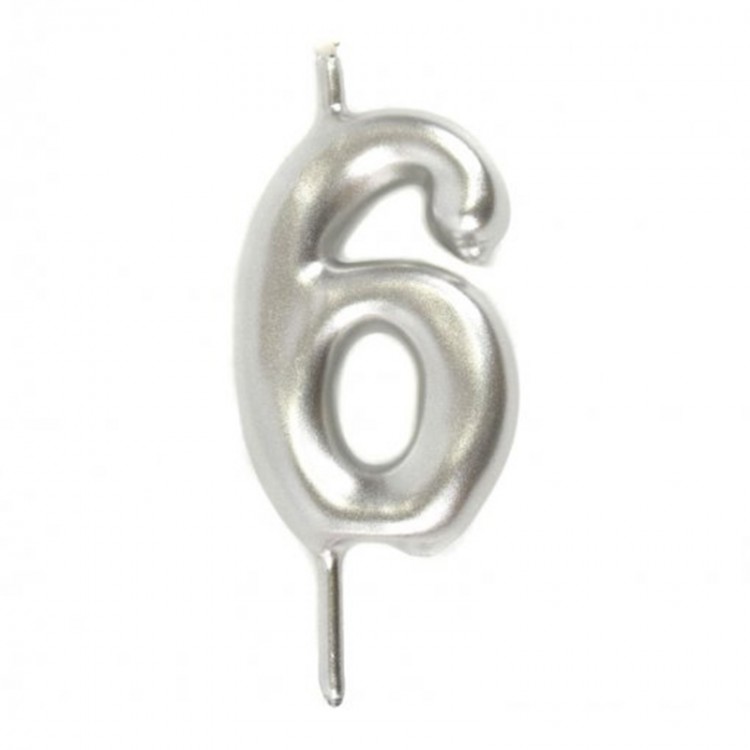 Vela Número 6 Prateado