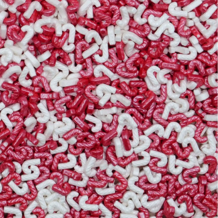 - ingredientes: glucose em pó, dextrose, xarope de malte, estearato de magnésio, cera de carnaúba, goma arábica, corante: E124, E127, E170.