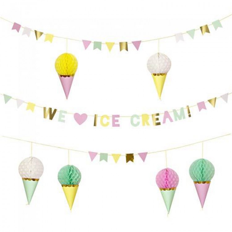 - 3 grinaldas com letras e/ou bandeirolas, 6 gelados 3D);