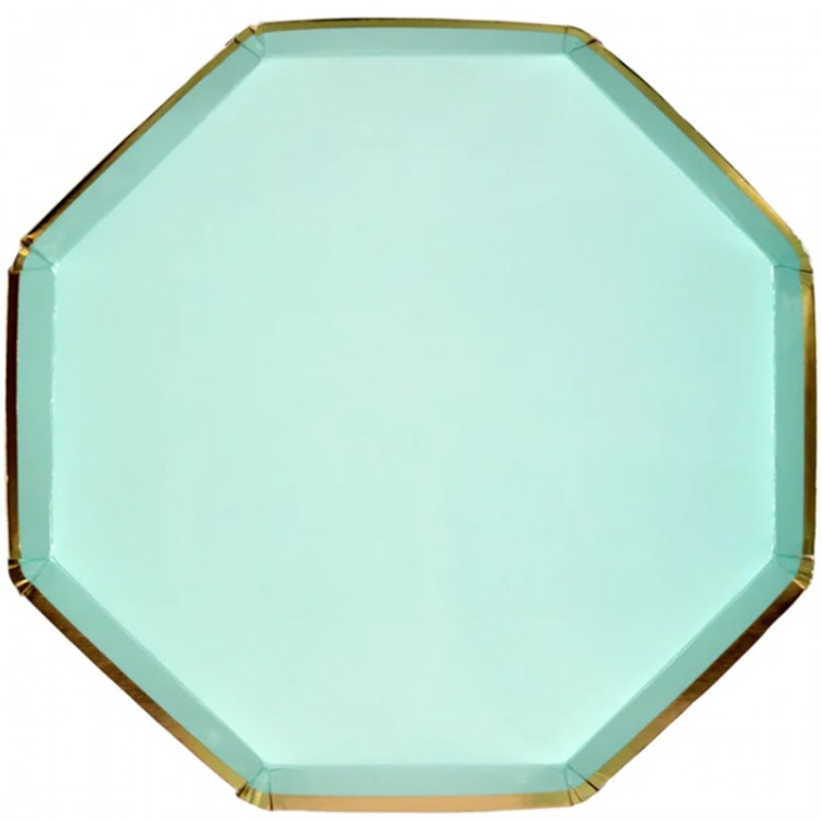 Pratos Octogonais Verde Água|23cm