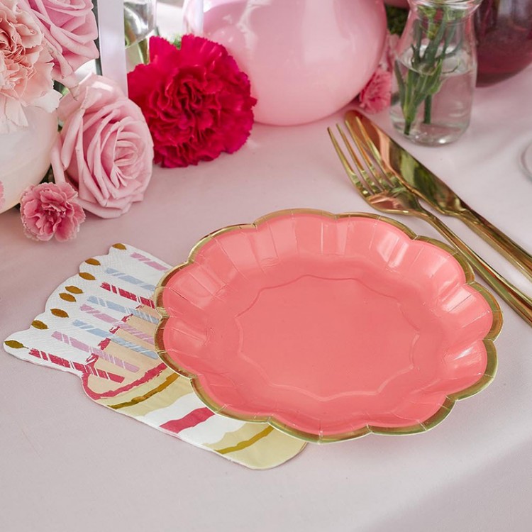 Pratos Rosa Recorte Dourado