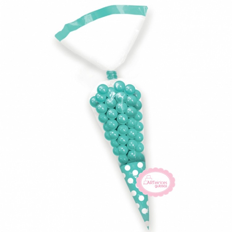 Sacos Cone Verde Água Bolinhas