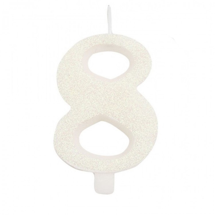 Vela Número 8 Branco Glitter